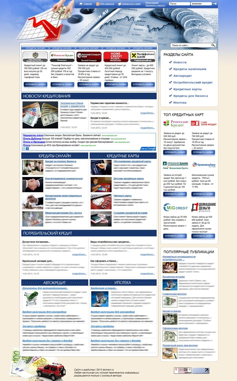 - Блоки в центральной колонке выводят автоматически анонсы статей из разных разделов сайта.