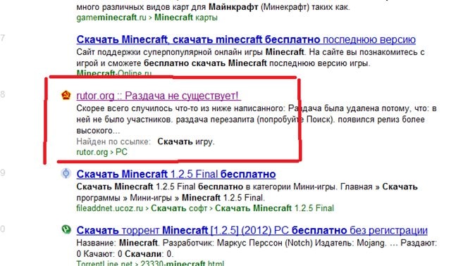 По запросу "майнкрафт скачать бесплатно" Яндекс выдал