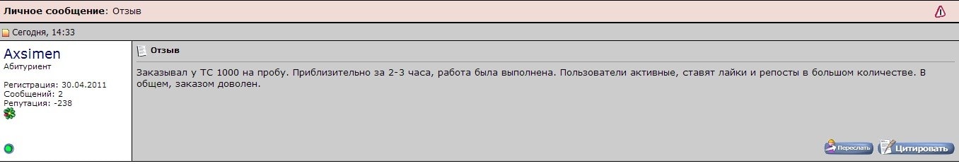 Сам ТС подошел к оказанию услуги более, чем ответственно. Согласовал время и подобрал рекламный пост в тему группы. Услугой доволен, поэтому и отписываюсь.