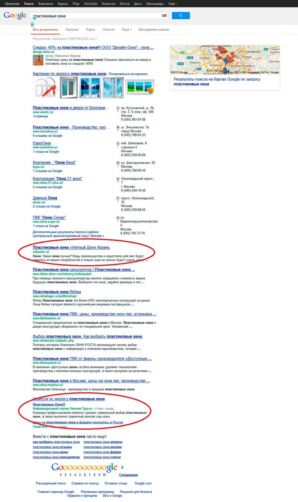 Если бы человеку понадобились пластиковые окна в Москве, он бы их нашёл даже без прокрутки страницы, что в гугле, что в яндексе.