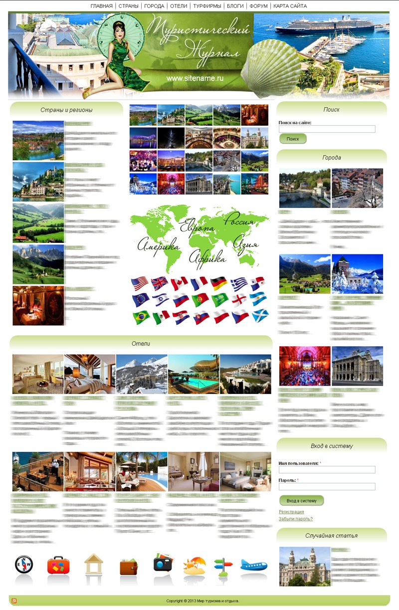 Контент: ручной рерайт + копирайт. Тематические статьи и заметки туристической тематики - уникальные, интересные, разбиты на несколько категорий. Также материалы отсортированы по регионам. Карта под шапкой кликабельна. Общий объем: около 100 тысяч символов! Каталог турфирм. Общее кол-во страниц на сайте, учитывая каталог - более 500!