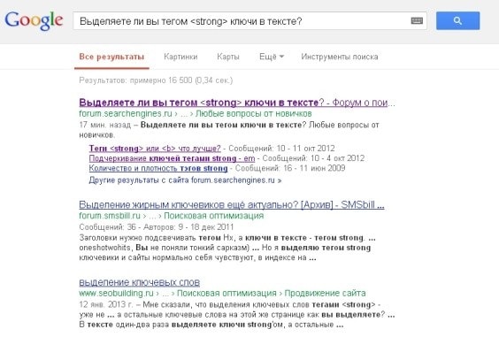 Я всем своим друзьям и клиентам советую выделять ключевики стронгом. Работает отлично. 3 дня на переиндексацию и на 4ый день топ. Самое интересное, что как только я начал выделять ключи стронгом на своих сайтах, то у меня резко улучшилось здоровье и это не совпадение!!! Стронг работает и это просто чудо!