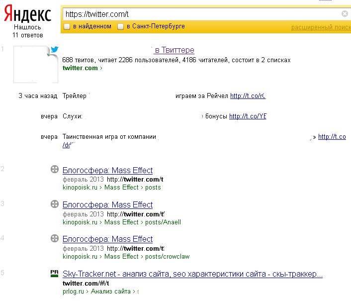 Я думаю что запрос никакой и страница для него как раз оптимизирована и конкуренция ноль..даже и без твитов он был бы на первом месте.