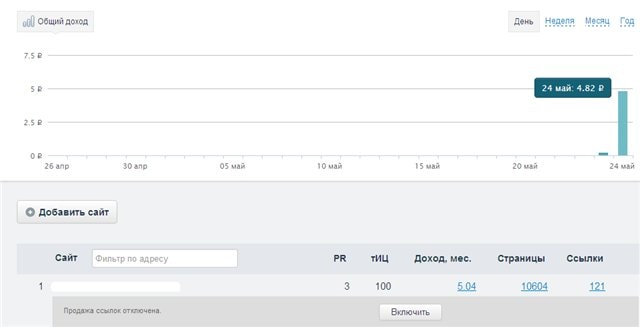 Начисления 4,82 руб за 23 число, было 122 ссылки куплено, это получается, что цена ссылки 1,2 руб.