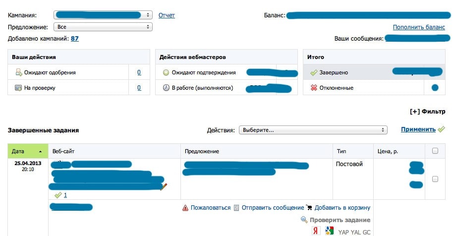 Выбрал определенную кампанию, смотрю площадки, на которых уже покупал ссылки. Во всех показано только 1 размещение, хотя в некоторых есть больше. Поправьте, а то приходится в корзине смотреть, закупался я для определенного сайта или нет.