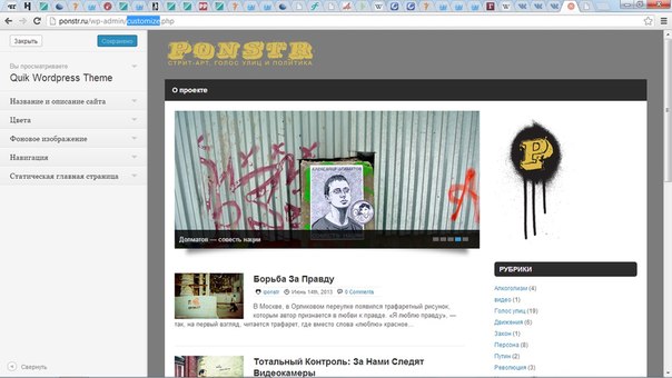 Я столкнулся со следующей проблемой. Поставил шаблон Quik WP Theme и у меня перестал работать плагин Simple Lightbox. Это не беда. Беда в том, что не работает встроенный в шаблон плагин. Фото-слайдер, что на главной странице в верху, не отображает запись. Однако, если я захожу через консоль в настройки темы (customize.php), то записи в фото-слайдере отображаются.