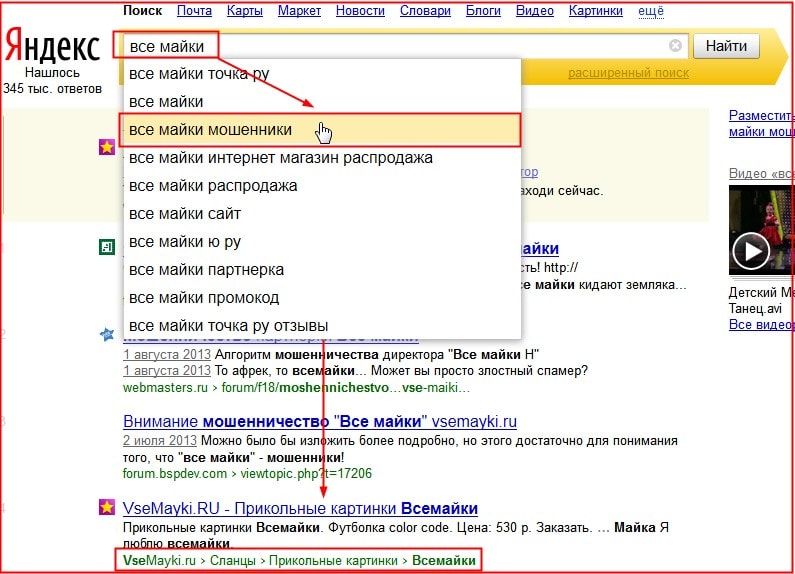 2. Яндекс предлагает вариант => "Все майки мошенники" 😂