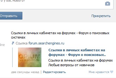 И кстати в разных браузерах процесс определения ссылки для прикрепления к посту тоже бывает разным! Например в хроме ссылку скопировал в форму составления поста и она тут же прикрепилась, а в опере от ссылки нужно пробел обязательно сделать после копирования! Вроде нюанс совсем уже нубский, а всё-равно постоянно находятся те, кому этот момент не ясен!