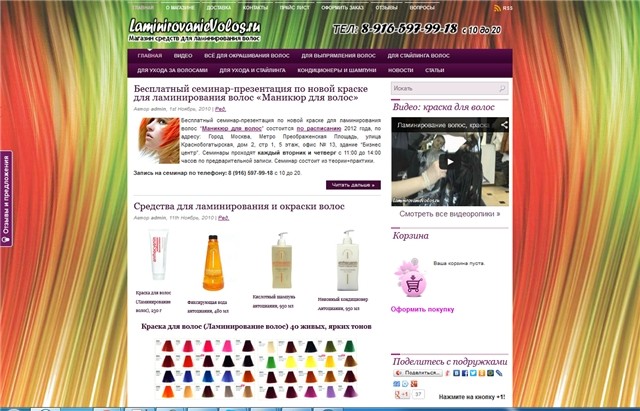 Продам отличный интернет магазин LaminirovanieVolos.ru со средствами для ламинирования волос. Работает на движке Wordpress+плагине wp-shop, установлены все необходимые плагины и анти-спам.