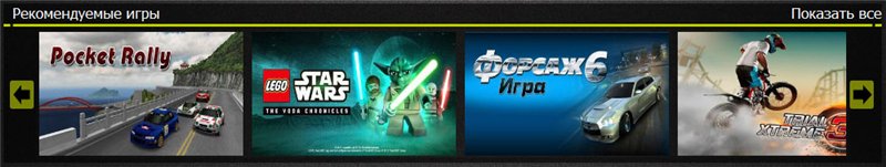 Под слайдером установлен спойлер, выводящий игры из раздела Рекомендуемые (спойлер рабочий, прокручивается)