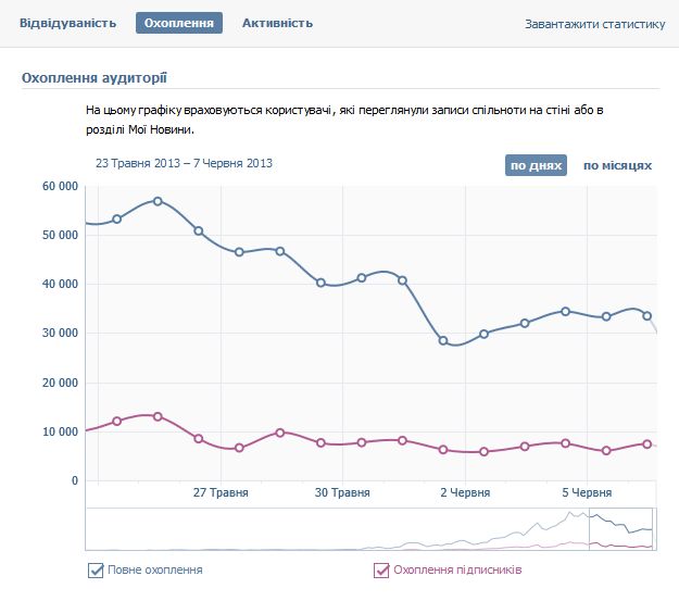26.000 людей, 2.000 уникальных посетителей, охват - 6.000-7.000, мне нравится - 3.000, комментариев - 500-700. Вступивших – 100 (чистыми).