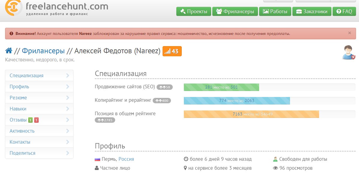 В каких отзывах вы чего-то у меня ожидаете? Федотов заблокирован на этом ресурсе, о котором вы пишете, за неоднократное мошенничество.