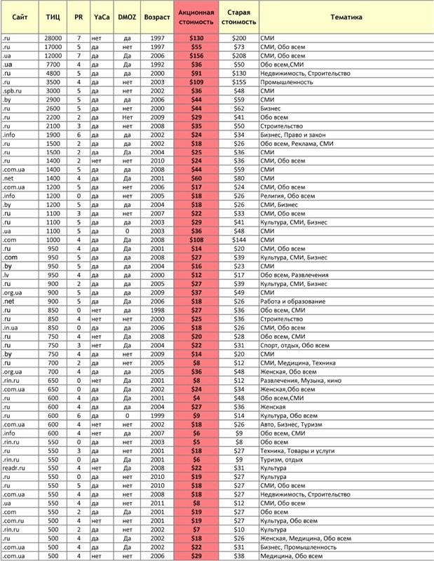 - возраст сайтов от полугода до 15 лет