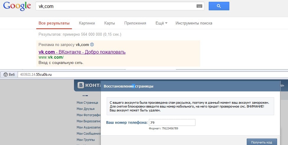 Забавно, смс-мошенники крутят объявление в гугле, с редиректом на псевдостраницу вконтакте.