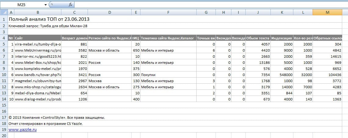 Может кто-нибудь объяснить почему сайты в первой десятке расположились именно в такой последовательности. Особо интересует чем берет сайт Вира-Мебель, который занимает ТОП1 по абсолютному большинству запросов по названию товаров.