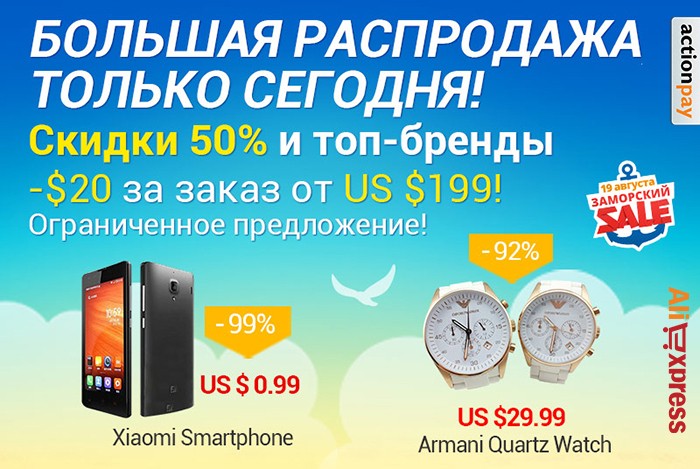 Миллионы товаров со скидками от 50% до 99%! Ограниченное предложение на часы Armani Quartz Watch от US $29,99, смартфоны Xiaomi от US $0,99 и многие другие товары