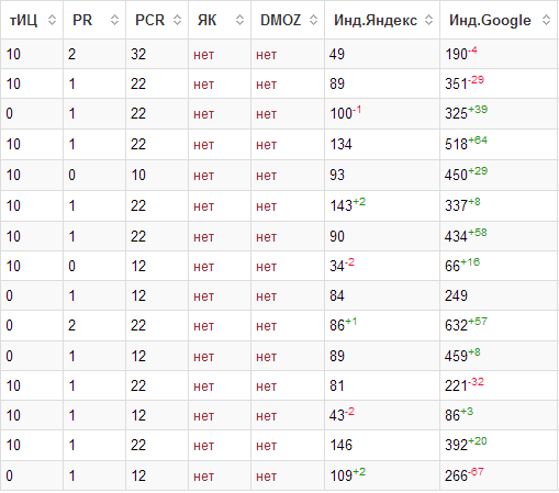 Выше скрин Всей пачки сайтов (15шт) на сайте pr-cy (обновление 02.07.13).