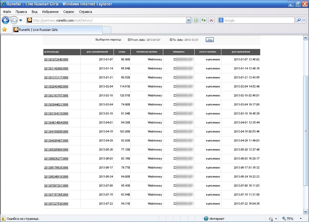 Скрин выплат: