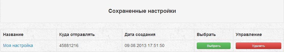 2) Возможность удалять/изменять/просматривать сохраненные настройки.