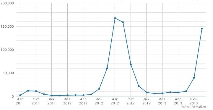 Как видите сайт сезонный, посещаемость растет с апреля и идет на спад в декабре.