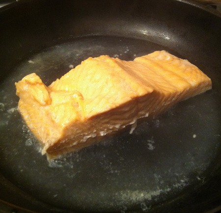 Отрезал половину от куска/посолил/200 грамм воды и на медленном огне до выкипания примерно мин 15.