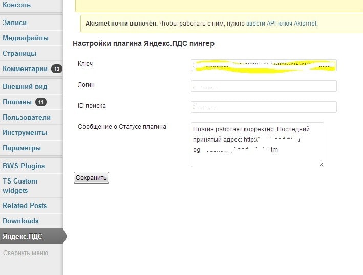 Добавил новую статью, тестовую..ну и?)) Ни чего ни где не заметил..про то что писали: "там будет в поле появляться сообщения лога, типа последний урл отправлен, или если не правильно стоит айдикей и тп, то будет сообщение об ошибке"