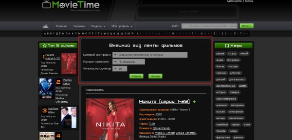 Добавлен модуль - "Внешний вид ленты фильмов". Модуль предназначен для настройки пользователями внешнего вида основной ленты фильмов (сортировка, количество фильмов в ленте на одной странице и т.д.). Демонстрацию работы можно увидеть на сайте http://demo.2movietime.ru/, доступы в админку как и у всех демо-сайтов.