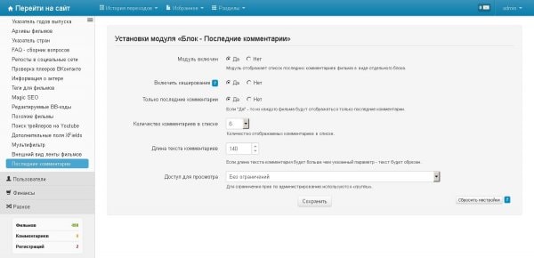 По просьбе покупателя вышло обновление - модуль "Последние комментарии". Модуль отображает список последних комментариев фильма в виде отдельного блока.