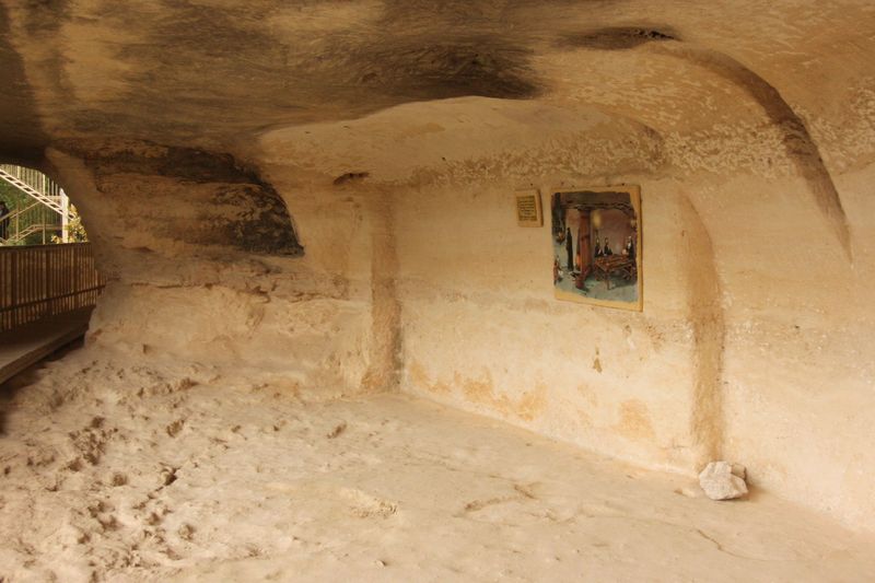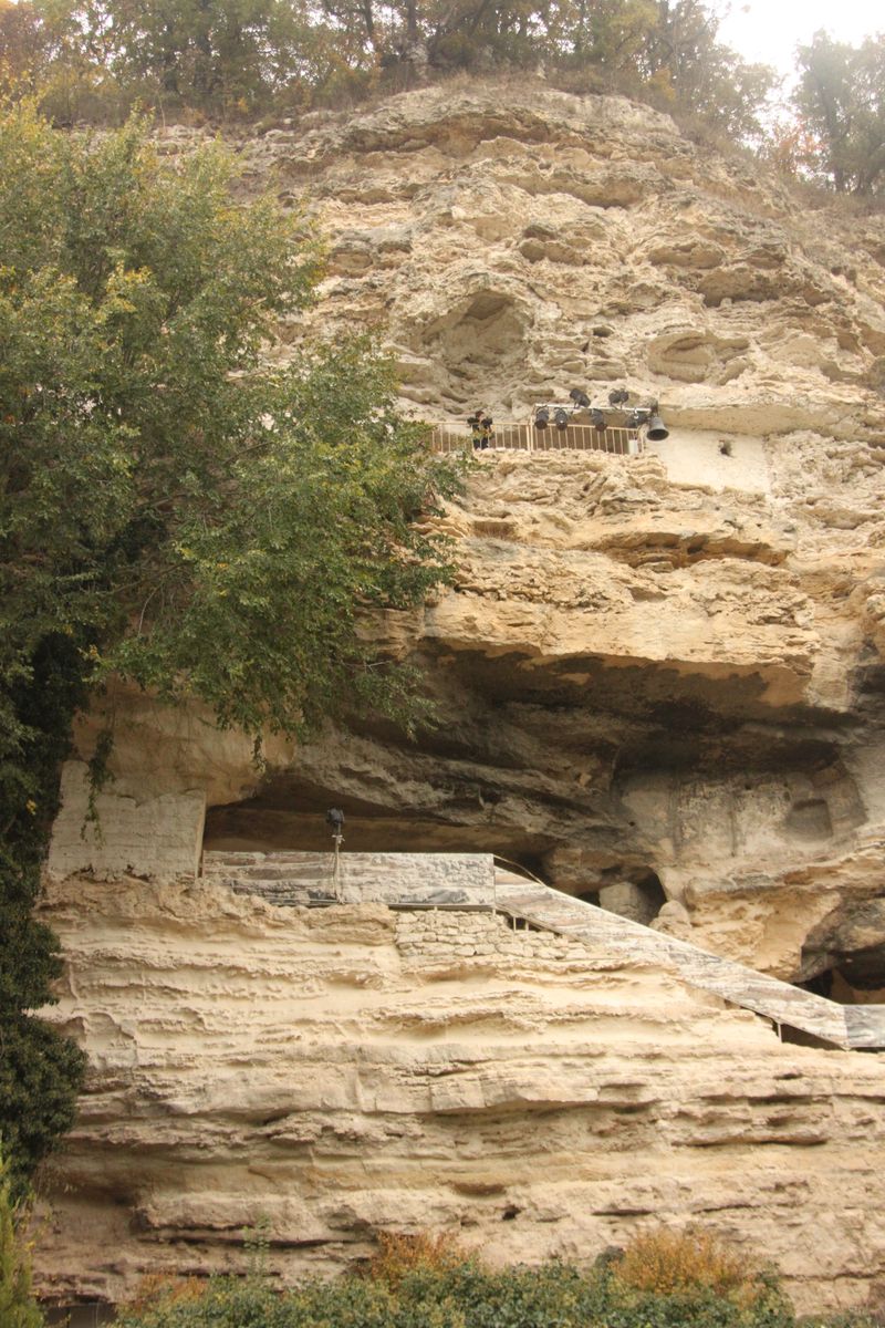 Там в IV веке монахи-отшельники вырубили в скале жилье для себя. Примерно на высоте пятиэтажного дома. И стали там жить, вообще не спускаясь на землю. Еду им кто-то приносил и они поднимали ее на веревках. Там у них были кельи, кухня со столовой и даже кладбище в скале. Короче, все удобства кроме WiFi.