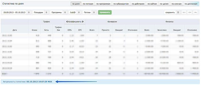Стоит отметить, что все наши системы работают полностью автоматически и запрашивают выгрузки рекламодателей каждые 3 часа, в связи с этим, оперативность обновления данных статистики в большей степени зависит от рекламодателей.