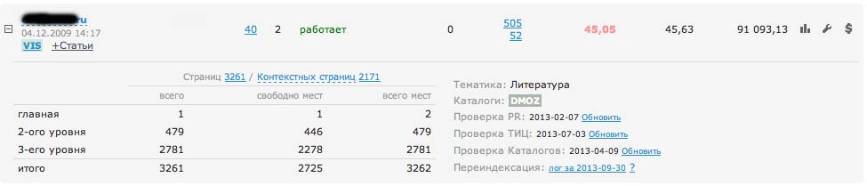 монетизация: только с сапы и с трастлинка. 120-130 рублей в сутки. В сапе по 1 ссылке со странице, продано 507 ссылок. В трастлинке по 3 ссылки в блоке, продано 2000 ссылок.