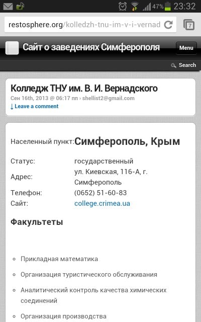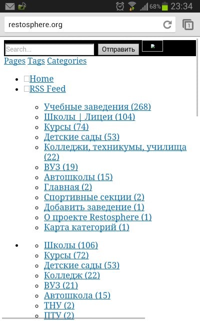 Установил,актировал, при входе через мобильный телефон: список категорий выглядит так