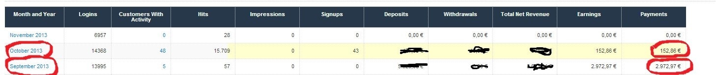 Проверили Ваш аккаунт в Affiliya. Очень странно, что Вы так пишите, у Вас хорошие прибыли, но в октябре один из Ваших игроков очень много выиграл и поэтому Ваша выплата стала минимальной, но Вы и сами это можете проверить. Если не знаете как то научим!