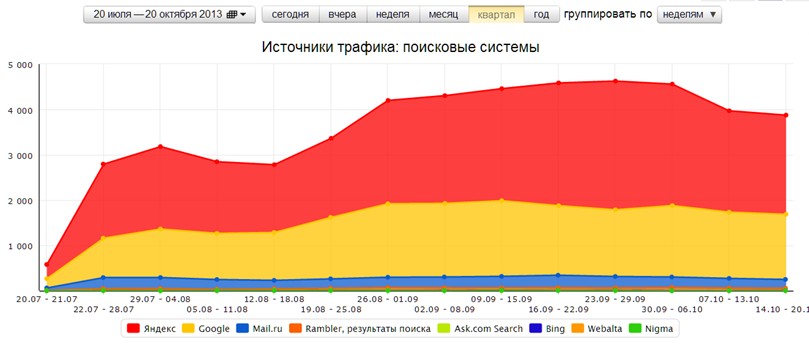 Трафик с Яндекса вырос за 2 месяца более, чем на 50%