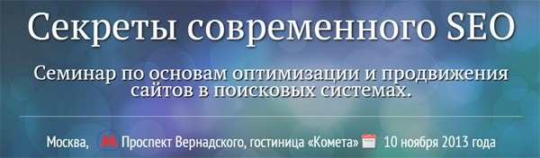 Наконец-то живой, восьмичасовой семинар Сергея Кокшарова в Москве, под названием «Секреты современного SEO» пройдет 10 ноября 2013 года.