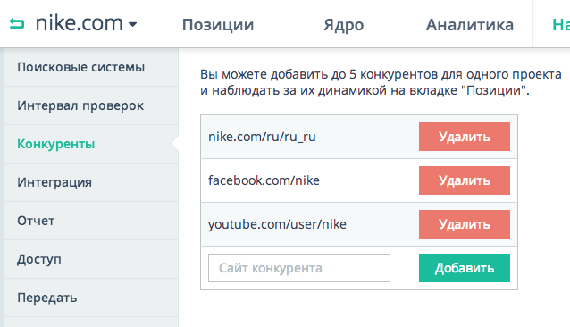 В качестве конкурента теперь можно добавить URL группы в социальной сети: вконтакте, фейсбук, ютуб и т.п.