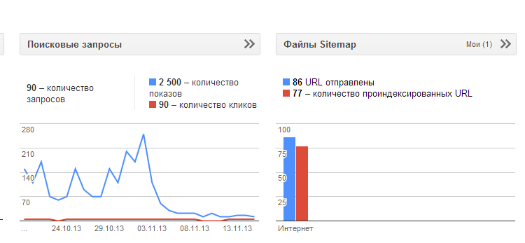 Однако в панеле инструментов сайта показывает "77 – количество проиндексированных URL"