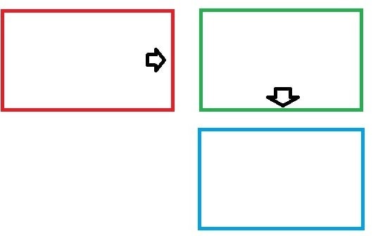 А вот теперь вопрос на миллион. Как можно сделать так, что бы она прокрутилась не по горизонтали, а по вертикали? Точнее, что бы при нажатии на кнопку на первом элементе, она прокрутилась вправо до второго элемента. А со второго, прокрутилась уже вниз до третьего. Что бы можно было понять о чем я, сделал вот такую картинку: