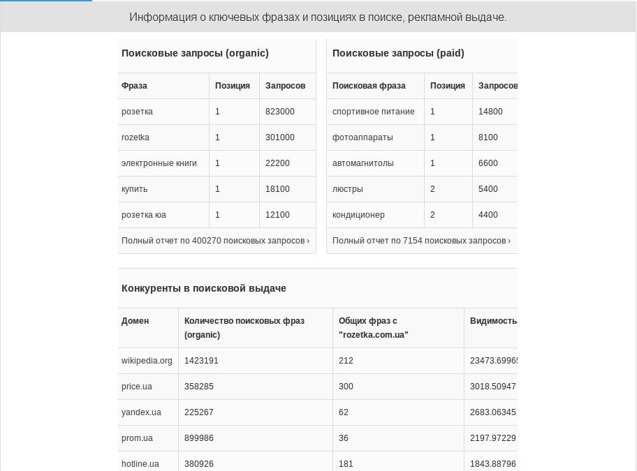 На данный момент мы готовы предоставить данные по 4.6+ млн. запросов и 4.4 млн. доменов, которые находятся в топ 50 поисковой выдачи.