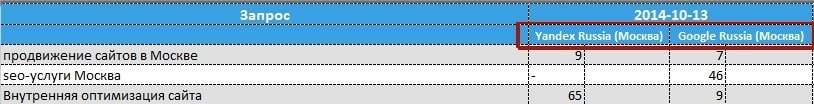 Позволяют просматривать позиции по всем поисковым системам и регионам в одной сводной таблице. При этом можно выбрать вариант отображения информации: поисковики/регионы по вертикали или по горизонтали.