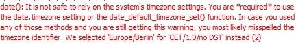 Напишыте своему хостеру пусть установит временную зону по умолчанию например date.timezone = "Europe/Moscow"