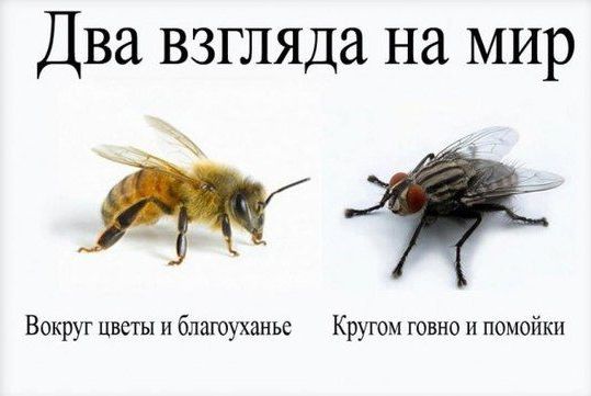 MVYur, не, ну пчела и мухи это понятно, но люди то? Как я говорил по статистики ежесекундно либо ограбление либо изнасилование либо убийство, либо все сразу :) Понятное что мухи и пчелы этого не увидят - но как 2 разных человека смотрящие на один мир в одно окна видят разное - один фантазию - другой статистику и факты :) ?