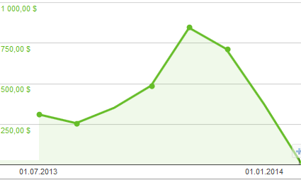 Цена клика очень резко меняется. Например, в определенный период она $ 0.15, а потом вдруг $ 0.26. Как вы понимаете, в пересчете на множество кликов это уже не копейки, то есть центы, а десятки, сотни и тысячи. Поддерживаю, кстати, теорию "искусственного интеллекта Адсенс".