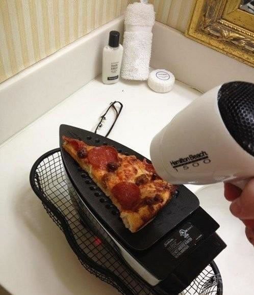 И чо? На сковородку кинуть кусок пиццы мозгов не хватило?