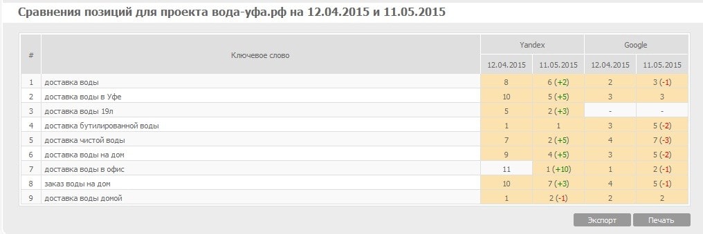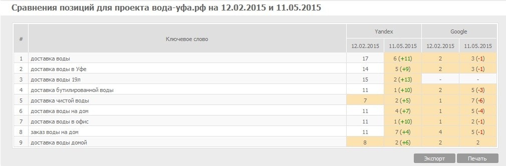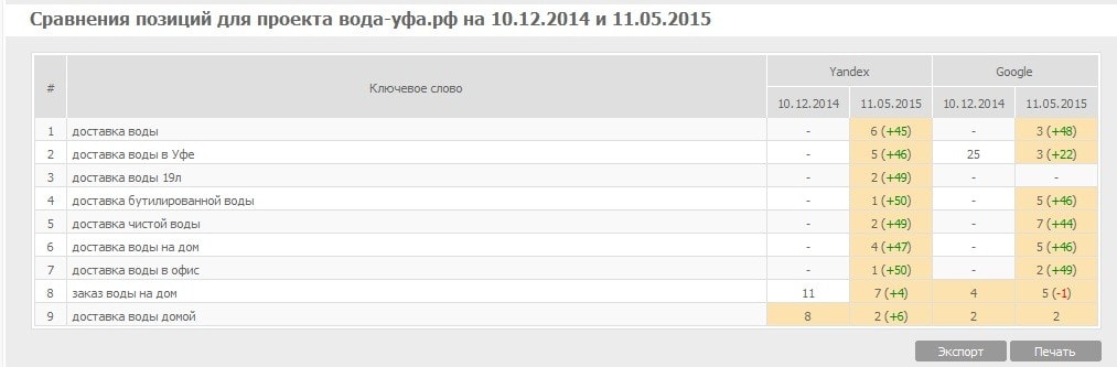На протяжении полугода вел проект вода-уфа.рф - продвигался сайт с нуля с декабря прошлого года. Бюджет у клиента как обычно небольшой - на работу затрачено 5900 руб - был заказан аудит и комплексное ссылочное продвижение. В месяц бюджет ссылочный и статейный в сумме составлял 2500 руб и за работу оплачивалось по 3000. Изменения на сайт клиент вносил самостоятельно, и к сожалению далеко не все рекомендации были реализованы, но не смотря на это результаты следующие: