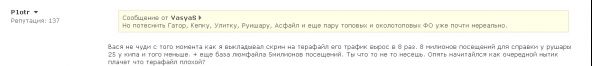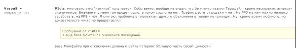 В процентном соотношении посещаемость лафайла составляет 0,5625% от посещаемости терафайла. НО поскольку Василий нигде не видел что терафайл хвалят а именно это является показателем доходности файлообменников то он внимательно ждет когда же выстрелит лафайл точнее выплывет и судя по тому что он его вспомнил лафайл это нереально перспективный и доходный проект чуть ли не единственный и самое главное он для паблик форумов, ну то есть хороший он, но почему то всего 1500 человек в сутки его посещает, но хороший.