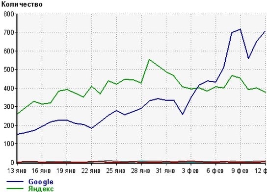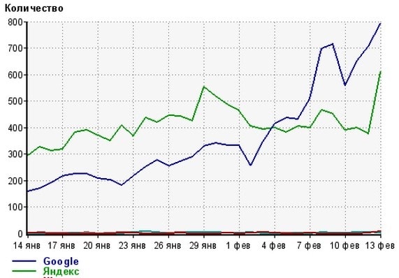 Народ шел в основом с яндекса, теперь видно на скриншоте резкий крест изменения трафика и гугл начал лидировать.