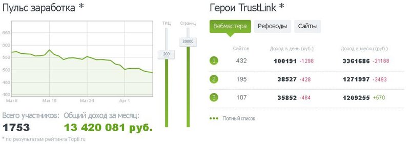 Трастлинк нас видимо за дураков держит - количество ссылок растет, а доход падает