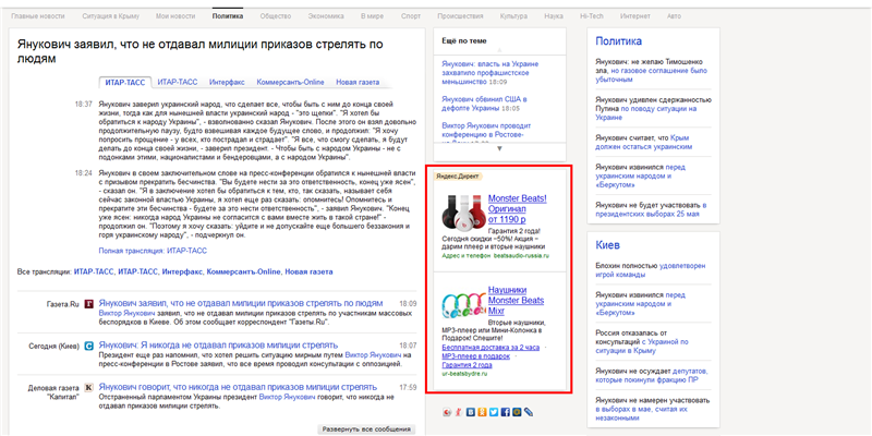 После этого я уселся читать новости и вуаля! В РСЯ вижу следующую картину:
