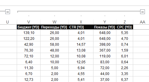 2. В файл СЯ выгружаются дополнительный блок параметров из Яндекс Директа: